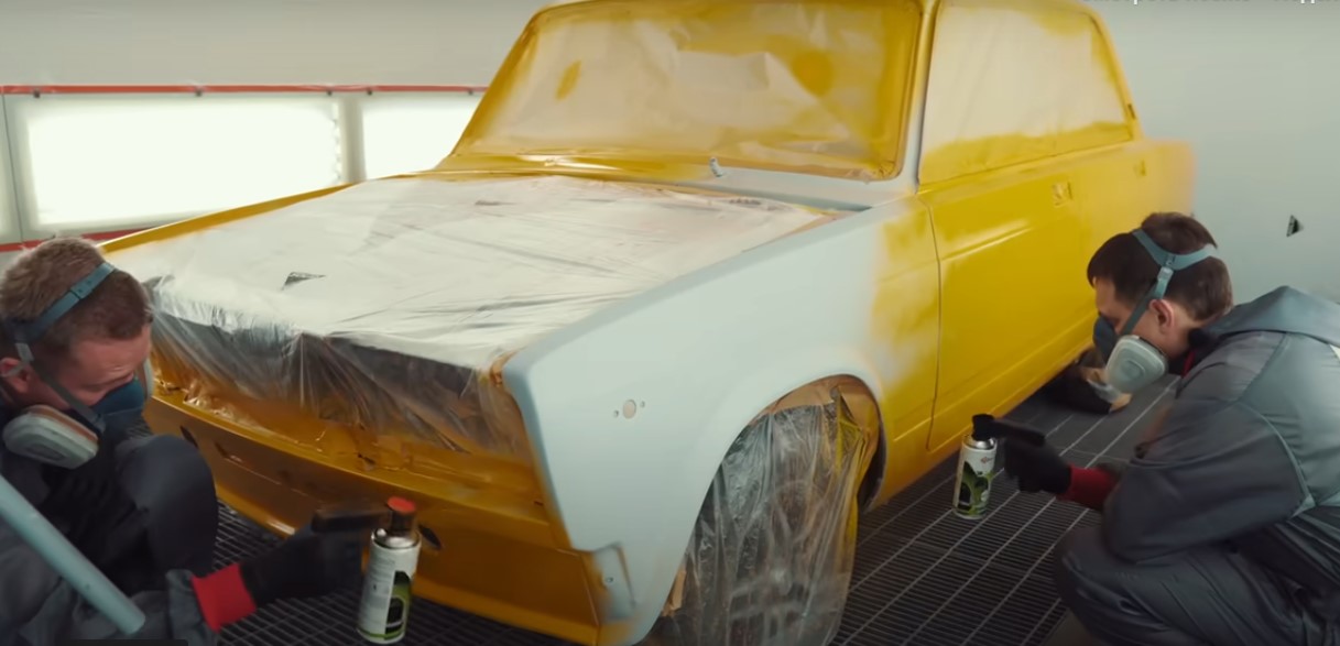Для эксперимента было заготовлено 30 баллонов, которые нам заправили краской ребята с Profcolor.ru. Подопытным авто стала вазовская «пятерка», которую из белой хозяин решил сделать желтой.